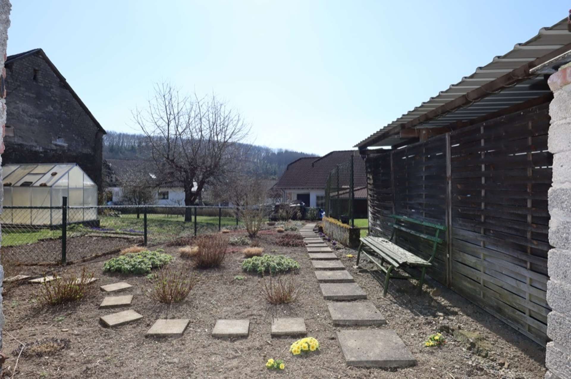 Das Grundstück ist 517 m² groß. Vor dem ehemaligen Ökonomiegebäude befindet sich eine Hoffläche, die sich sehr gut zum Parken eignet. Hinter der Durchfahrt zum Grundstück ist noch zusätzlich Platz für einen PKW. Dahinter befindet sich der zur Rückseite hin gelegene Garten, der pflegeleicht angelegt ist. Der Bereich unter der großen Terrasse bietet zusätzliche Lagerfläche.