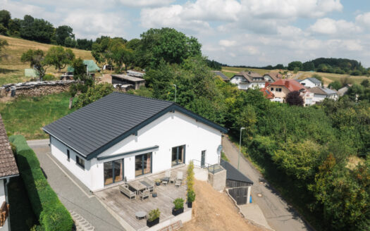 Een gloednieuwe vrijstaande woning (bungalow) op een panoramische, vrije locatie in de gemeente Üdersdorf staat te
